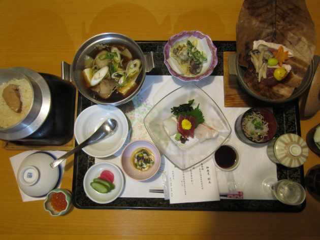 今月のおすすめは、合鴨と秋の実朴葉焼きと はらこ飯、鍋は山形芋煮ですので 是非ご賞味ください!